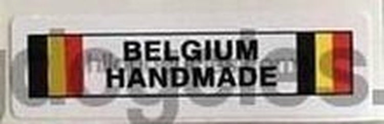Tiny little decal fitting on downtube below head-lug.  Oblong with Belgian colours and "BELGIUM HANDMADE" (sic) in the middle.