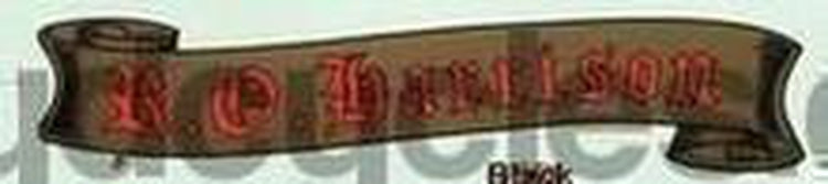 Scroll type with Olde English style lettering insert.  Gold/black scroll, red lettering with black edge.