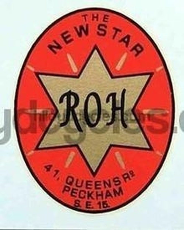 Oval with star, R O H, "The New Star" & address