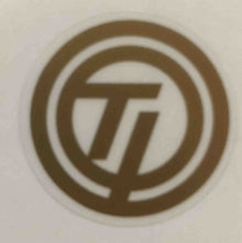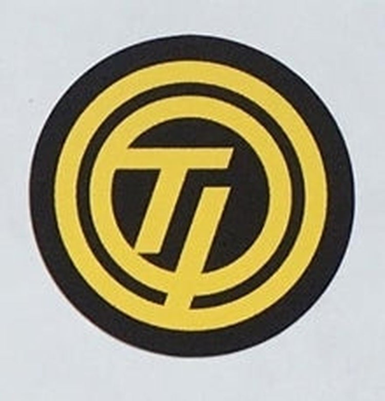 For the red/black/black frames of late '70's - early '80's. "T.I." in yellow with yellow circles on black ground, or reversed. Also available in gold, black or white printed on clear