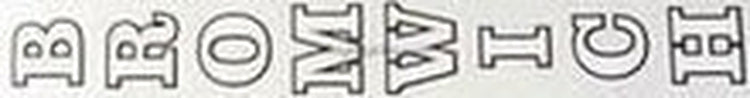 In white with double outline to each letter, first gold then black.  Letters are as JM2, but arranged vertically.