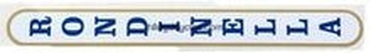 White Sausage with gold or red edging and distinctive vertical type face inside in dark blue.