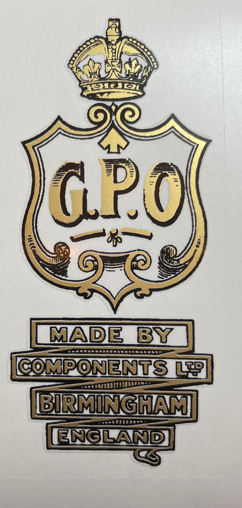 GPO "Made by Components Ltd." gold/black seat transfer with crown and ordnance mark
