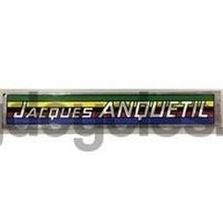 ANQUETIL metalised down-tube panel with rainbow band background.