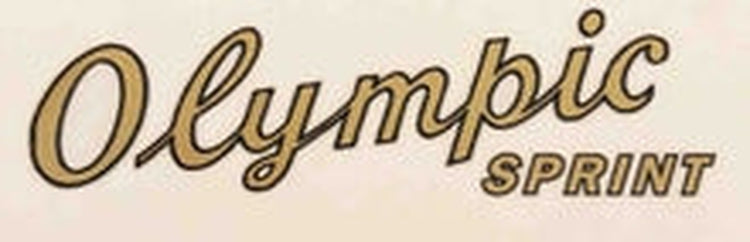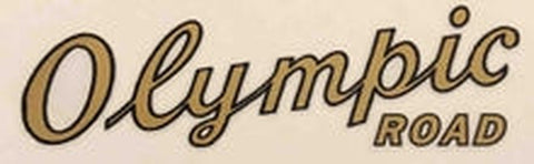 "Olympic Sprint" or "Olympic Road". "Olympic" in script , and then road, or sprint, in block caps underneath all in gold with black edge. Don't forget to specify which one !