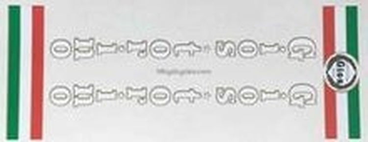 Italian bands top and bottom, laurel in top one.  "Gios torino" in white with gold edge.This is the one that is NOT a panel, so the colour of the frame shows through the individual detail of the decal.