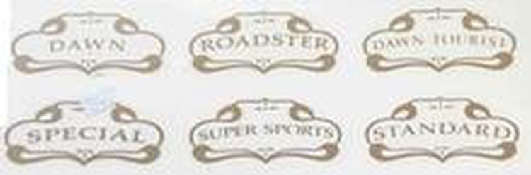 All are gold block in a small fancy frame. Models as follows:- "Road Race", "Utility", "Dawn Tourist", "Sports", "Popular", "Special", "Super Sports", "Standard", Roadster, Dawn
