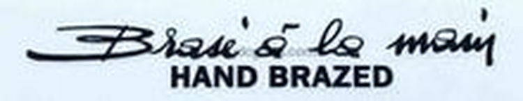 "Brase a la main" decal, usually positioned at rear of top tube. Printed white, or black or gold onto clear.