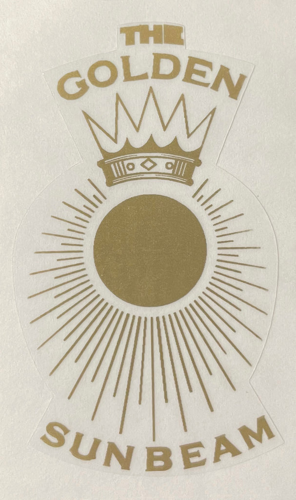gold headtube transfer. Sunburst, crown and "the golden sunbeam".