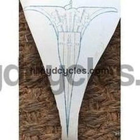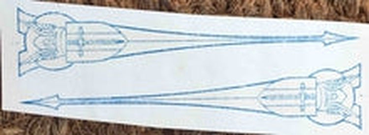 Very fancy fork-leg pair with crown, sword etc, and very fancy seat tube top (?) with matching sword but with flying pennants over the top. Typically whimsical 1950's stuff! Original Varnish fix.