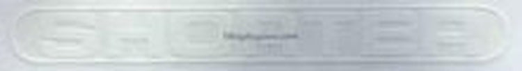 Large "SHORTER" inside a "sausage" with clear background so that frame colour shows through. Printed in white or in black onto a clear substrate.